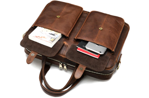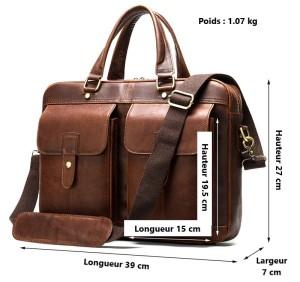 Il va vous séduire, ce cartable de travail-accomplishment est fait en cuir véritable de première couche, il est issu de la partie supérieure de la peau, la fleur. Le cuir a conservé sa surface d’origine laissant voir le grain naturel de la peau, il est particulièrement doux et agréable au toucher. Sa belle couleur marronne est idéale pour l’assembler avec un jean ou bien une veste costard noire, vous pouvez être en mode décontracté ou bien en mode sophistiqué. Le designer l’a conçu avec de belles finitions précises et parfaites. Les doublures sont faites en polyester, elles sont résistantes, absorbantes et elles ne se froissent pas.