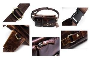 "Ce sac banane en cuir véritable nous propose un look différent avec sa forme mais aussi grâce à ses nombreuses poches vintages et ses couleurs attrayantes ."Description